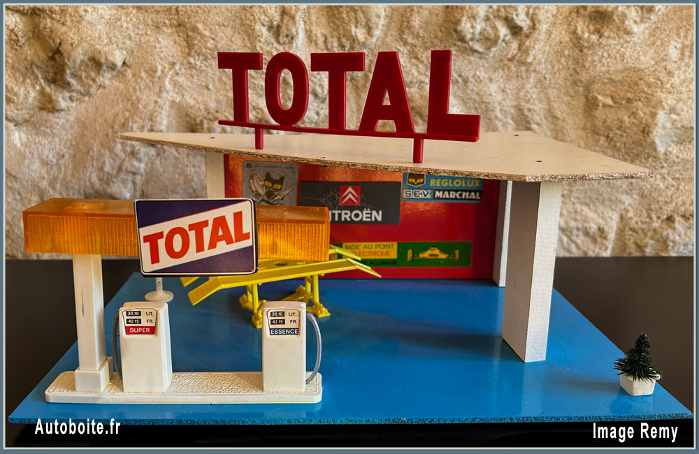 Garage station service, avec pompes et enseigne Total