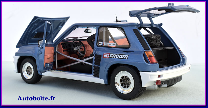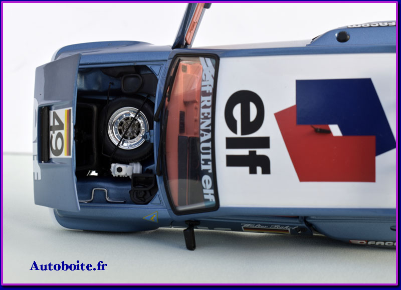 | C'est quand même bien une 1/18 avec des ouvrants dommage que cela se perde, surtout quand la voiture est aussi bien détaillée. Ici tout est ouvrant, bravo à Solido! Mais le moule commence à être ancien et les futures R5T risquent de perdre ces caractéristiques. |