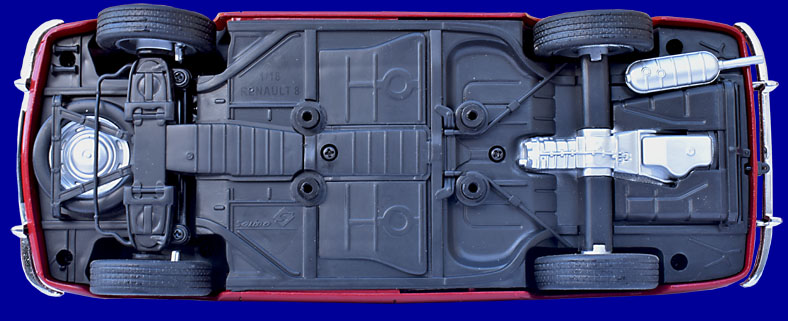 Sous le châssis (identique R8 Major) figurent, la roue de secours et son support,
