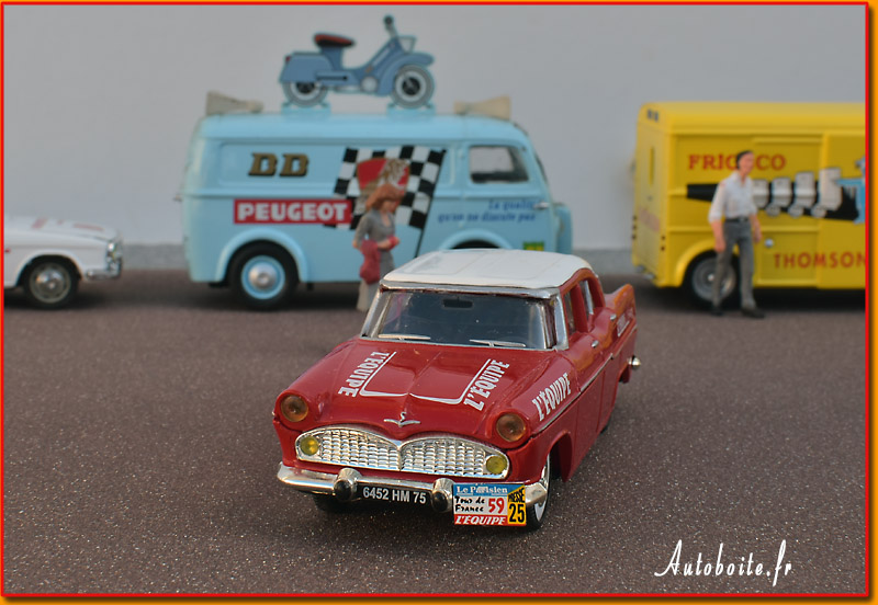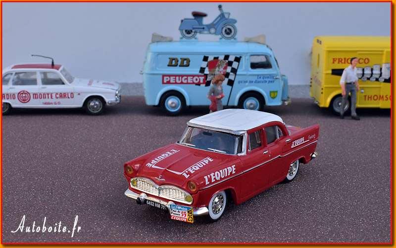 Nous retrouvons la Simca Chambord de Norev sous les couleurs de l'Equipe, journal sportif bien connu.