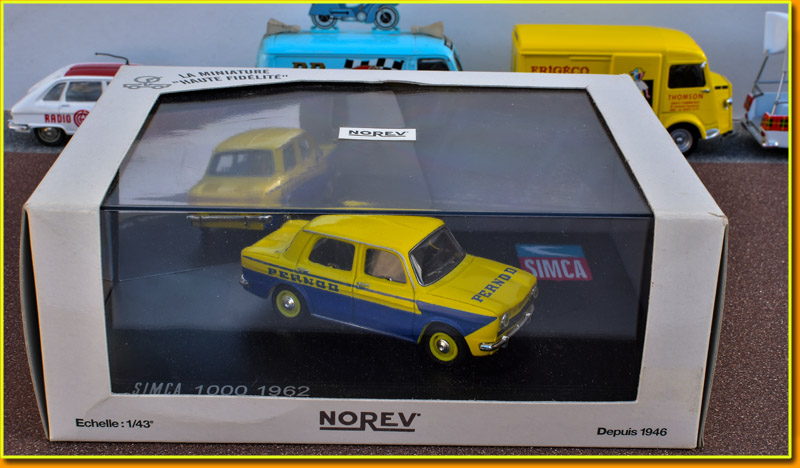 La Simca 1000 bien connue chez Norev revêt ici une parure aux couleurs de Pernod.