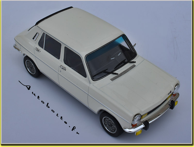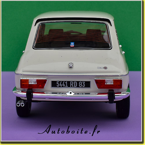 | La voiture présentée Référence: 185757 blanc Tacoma est une série limitée à série limitée à 300 exemplaires, figure également au catalogue Norev une 1100 TI vert métal Adriatique 1975 référence 185756, une autre couleur rouge Sumatra 1974 référence 185755, une jaune Maya 1975 référence 185752 toutes en série limitée à 300 exemplaires. |